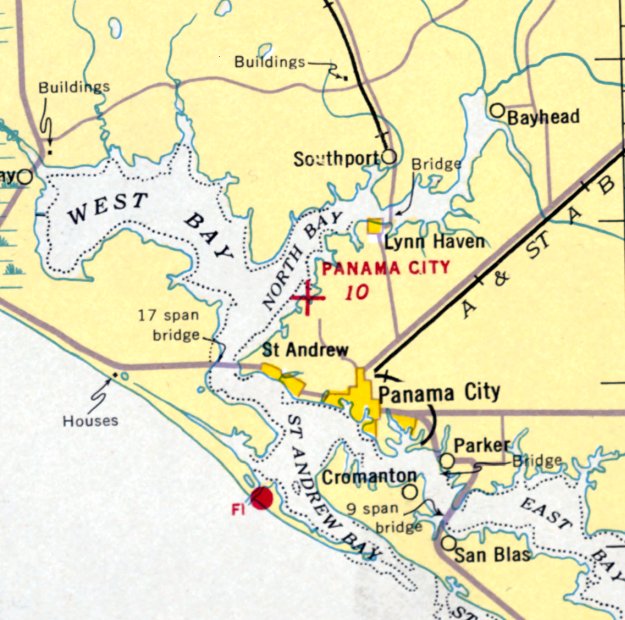30.21, -85.855 (Southwest of Tallahassee, FL)