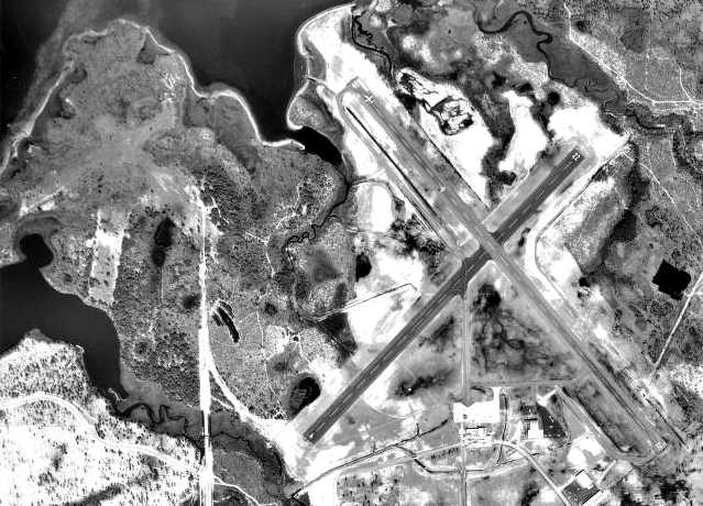 An admittedly low-quality 1994 aerial view looking southeast at Buchanan STOLPort.