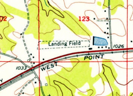 The earliest topo map depiction which has been located of Cobb Airport was the 1954 USGS topo map (courtesy of David Henderson).