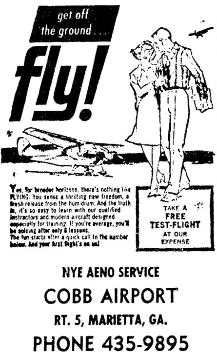 A 1961 advertisement for Cobb Airport's Nye Aero Service (courtesy of David Henderson).
