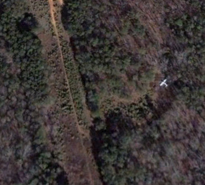A single-engine aircraft was evidently also abandoned & can be seen stranded in the woods at the site of the old hangar.”