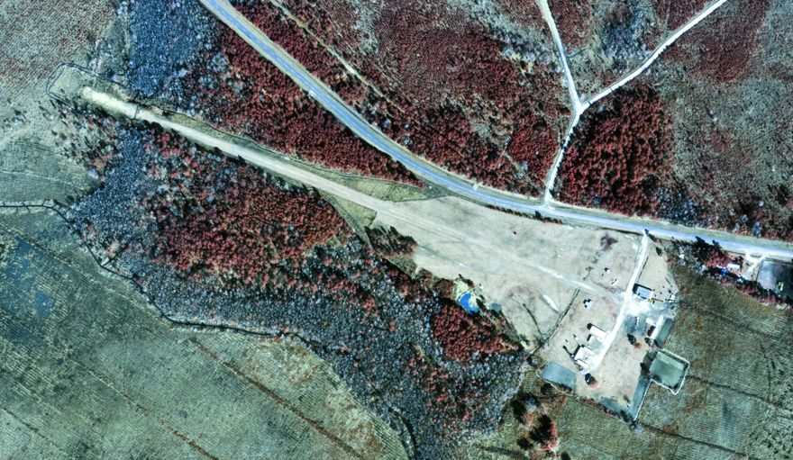A 2024 aerial view looking northwest showed only the faintest traces remained of the former Townsend Airfield runway.