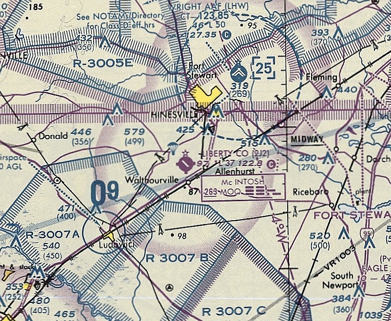One place that I thought was associated with Stewart but out of its airspace (but closer to Hunter Army Airfield) was off of Little Neck Road, about 2 miles outside the current R-3005.