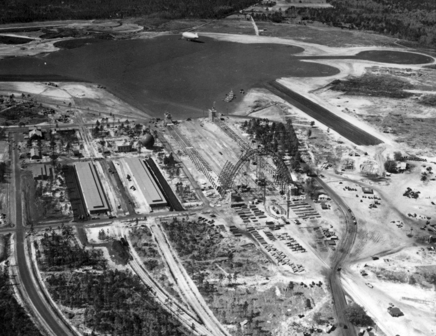 An amazing 1957 aerial view of no less than 7 blimps at Glynco.