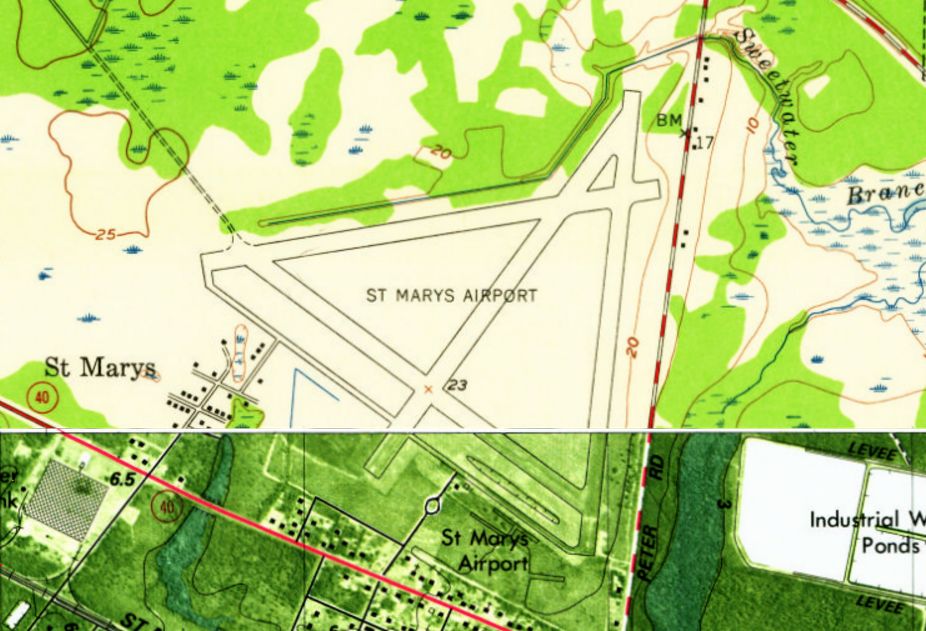 The 1956 USGS topo map depicted Glynco NAS as having 2 blimp hangars & the large paved blimp apron area & mooring pads.