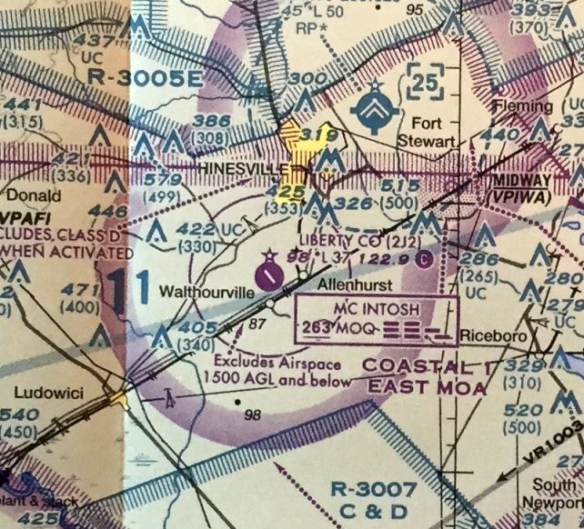 Chris Groshel recalled, “I flew out of Savannah starting in early 1976 & remember seeing some of those old Army fields associated with Fort Stewart at the edge of the Restricted airspace.