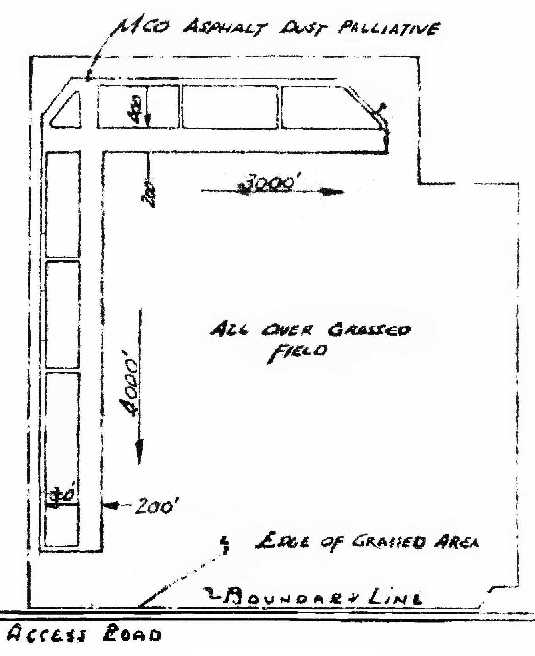 It consisted of a 150 acre trapezoidal property having 2 loam runways, measuring 2,740' northeast/southwest & 2,700' northwest/southeast.