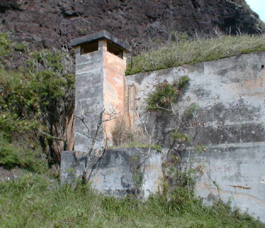 A 2005 photo by David Trojan of the the remains of a bunker adjacent to the former Kualoa airfield