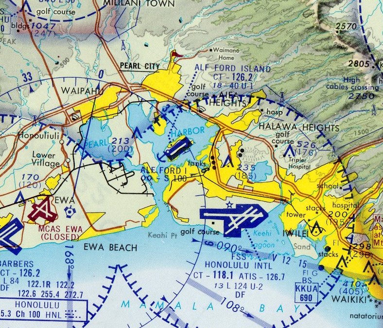 The Waipio Peninsula Naval Reservation Airfield was not depicted at all on the November 1957 Honolulu Sectional Chart (or later aeronautical charts).