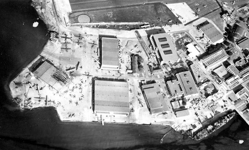A 2013 aerial view looking northwest at the site of the Waipio Peninsula Naval Reservation Airfield showed a dramatic difference since 1985, with the airfield being very overgrown & barely recognizable.