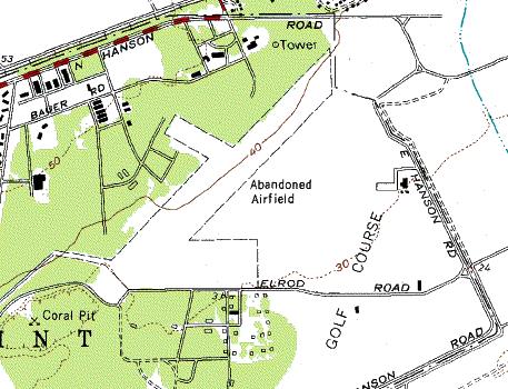 A 1998-99 road map (courtesy of Kevin Walsh) depicted the Waipio Peninsula Naval Reservation Airfield's runway, but without any label.