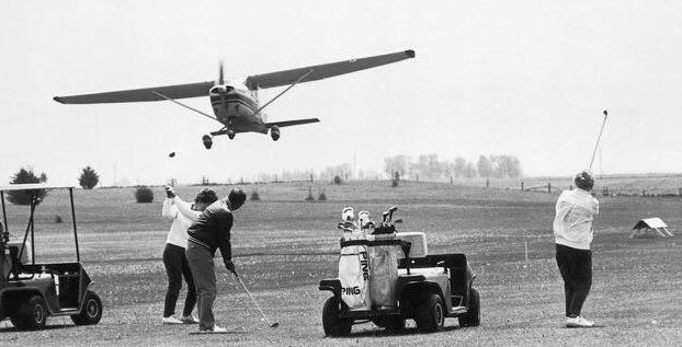 While a student at Pekin, another student used to land on the airstrip to attend baseball practice.