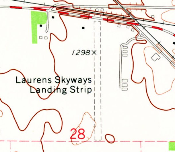 The last aeronautical chart depiction which has been located of Laurens Skyways Airport was on the September 1970 Dubuque Sectional Chart,