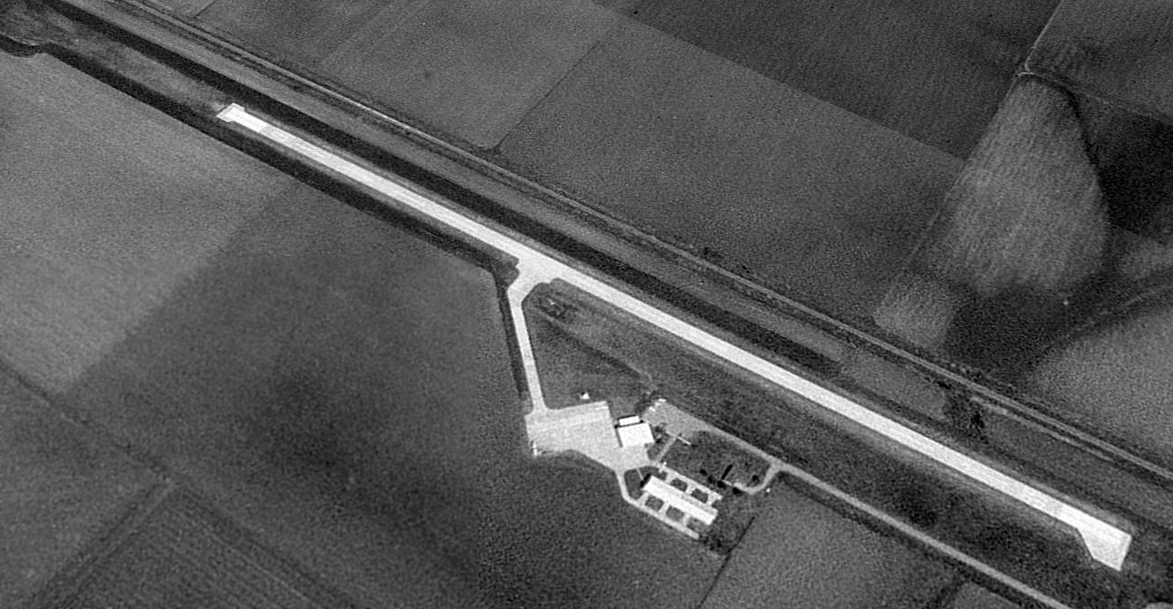 which appears to show the beginnings of the airport, with a single unpaved northwest/southeast runway having been newly constructed.
