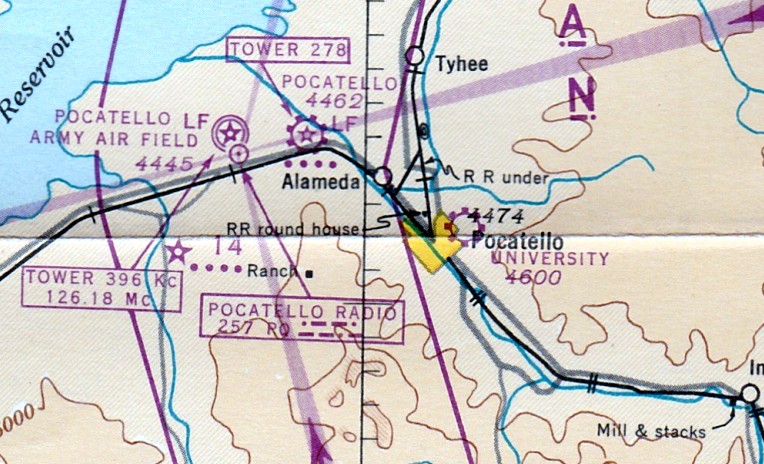 The January 1944 Pocatello Sectional Chart (courtesy of Ron Plante) depicted Pocatello Municipal Airport