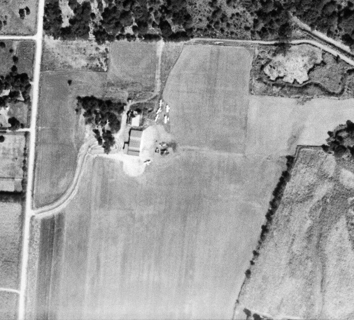 A 10/15/43 aerial view looking north at “Strother Field Auxiliary #5 (South Field)”