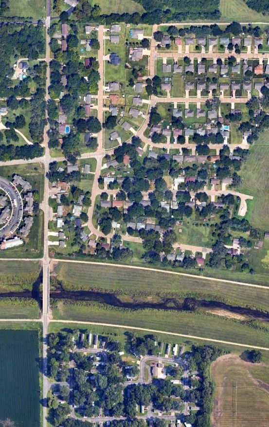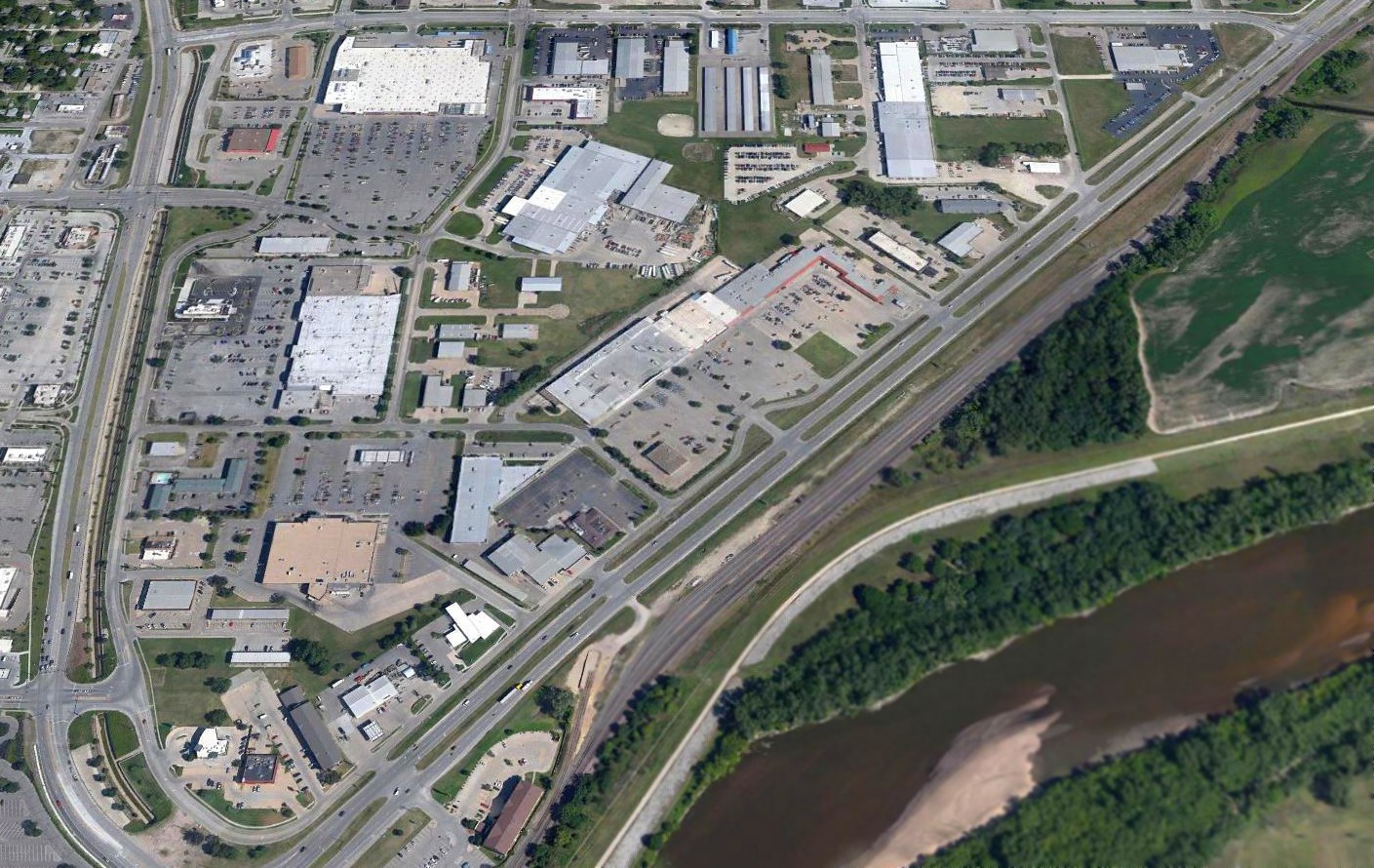A 2023 aerial view shows no trace remains of the original Topeka Airport.
