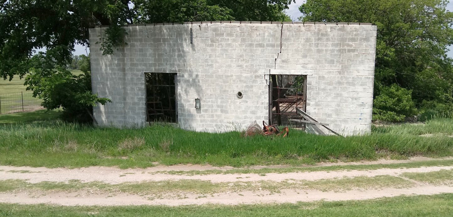 A September 2021 photo looking southwest showed the hangar remaining at the northwest corner of the Arkansas City Airport site.