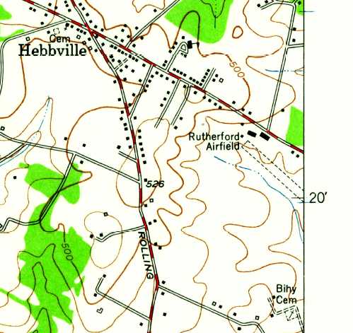The 1965 Washington Local Visual Navigation Chart depicted Rutherford Field as having a 2,100' unpaved runway.