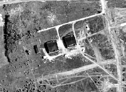 The only photo which has been located showing aircraft at Hoby Wolf Airport was a 1992 USGS aerial view looking east.