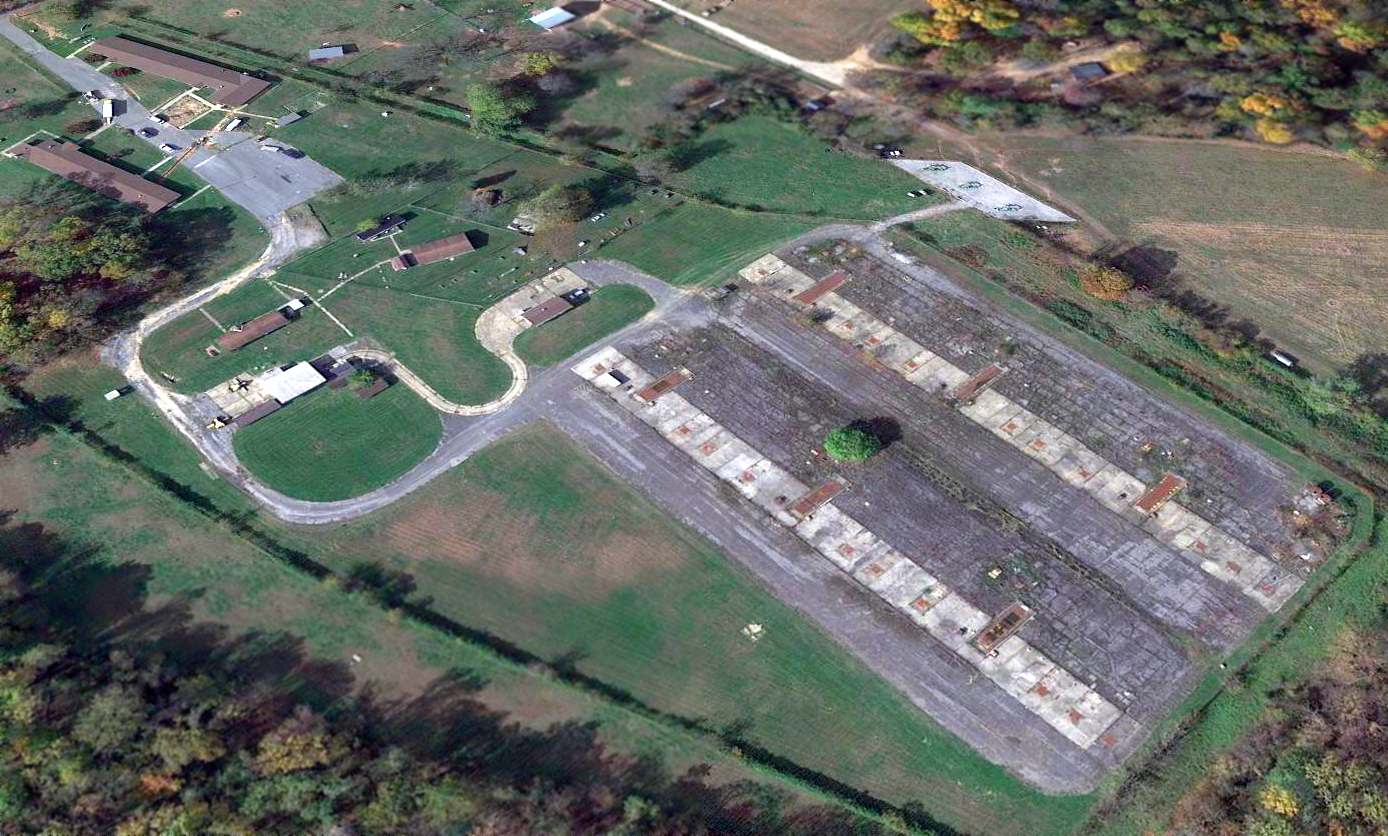 A 4/211/8 aerial view by Hover Solutions (courtesy of Patrick Whang) looking east at the Granite Nike Launch Site, showing the 6 sets of steel doors over the Nike Hercules missile underground magazines.