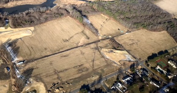 A 2013 aerial view looking north depicted Horn Point Aerodrome as remaining intact, including its 3 grass runways & the small buildings on the west side.