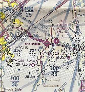 The last aeronautical chart depiction which has been located of Horn Point Aerodrome was on the 2008 Washington Sectional Chart (courtesy of Jonathan Westerling).