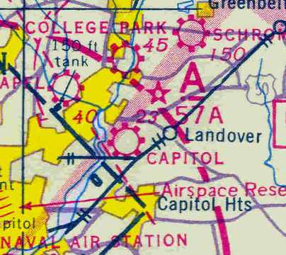 as that is where "Capitol" Airport was depicted on the 1945 Washington Sectional Chart (courtesy of John Voss).