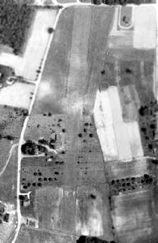 A 1938 aerial photo of the Hyde Field property did not yet show any recognizable trace of an airfield, just farmland.