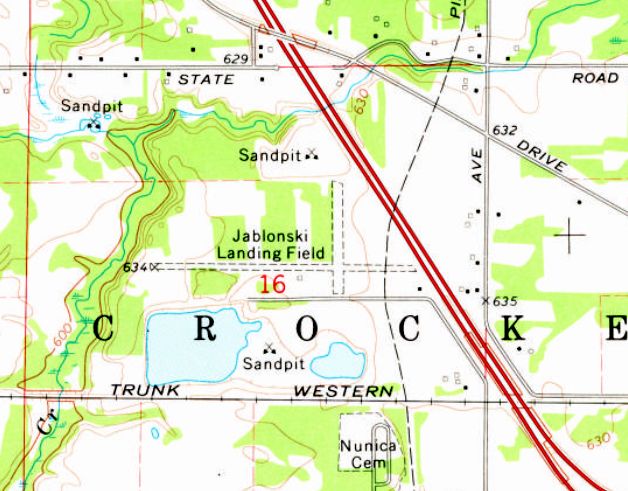 It depicted “Jablonski Landing Field” as having 2 perpendicular unpaved runways, with a small building on the southwest side.