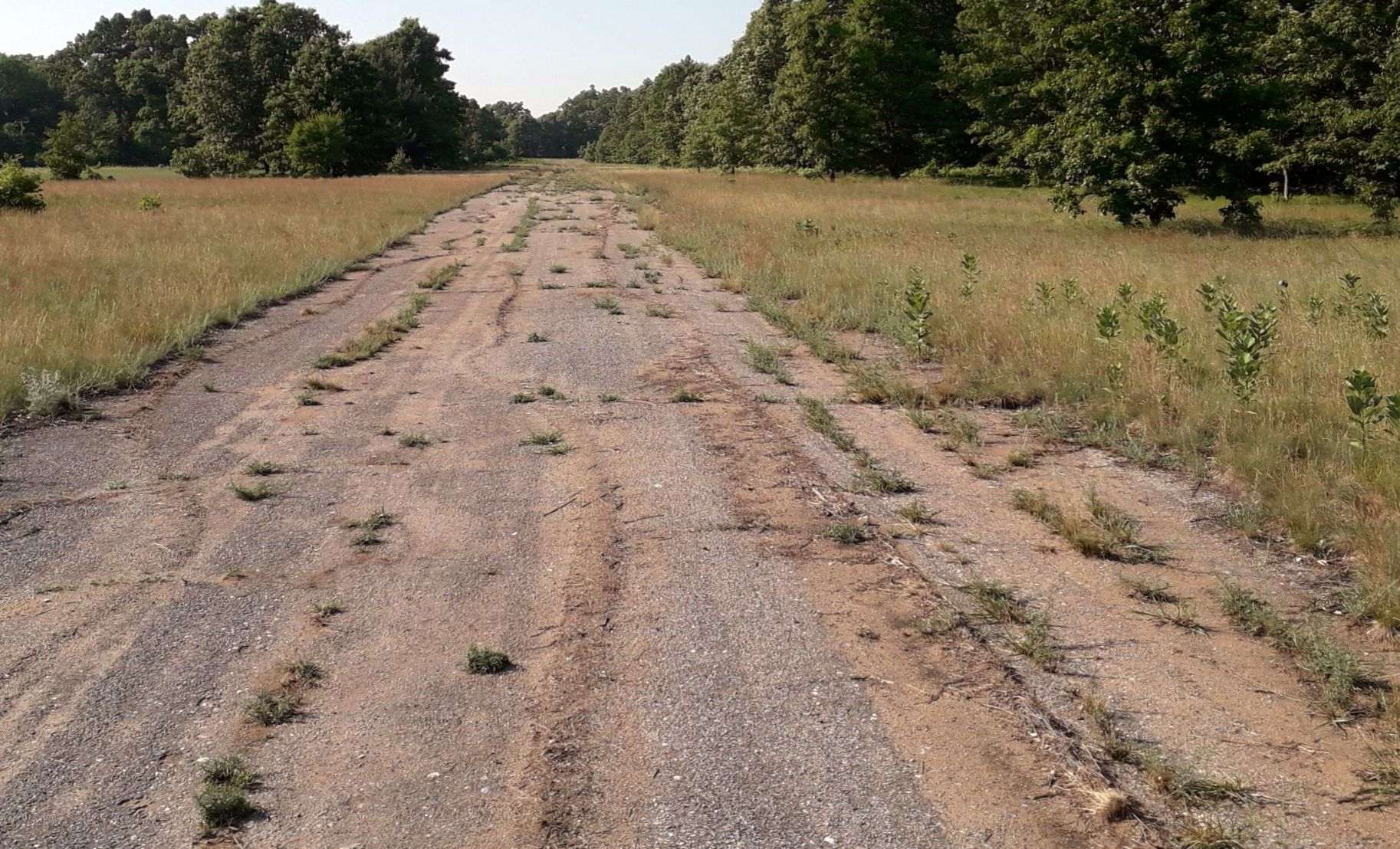 A 2018 photo looking north along the deteriorating Ottiger Field runway pavement.