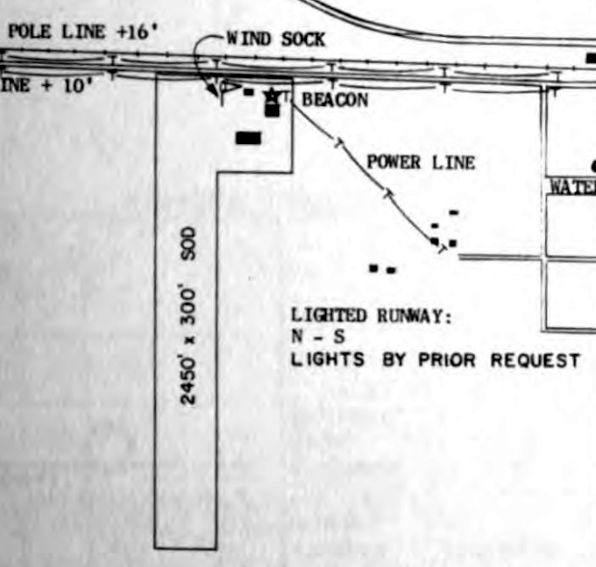 The directory described the field as having two 2,700 sod runways, oriented northeast/southwest & northwest/southeast.