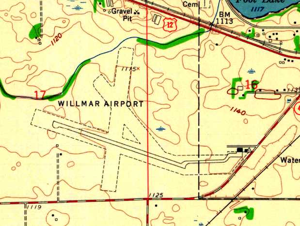 The earliest topo map depiction which has been located of Willmar Airport was on the 1958 USGS topo map.