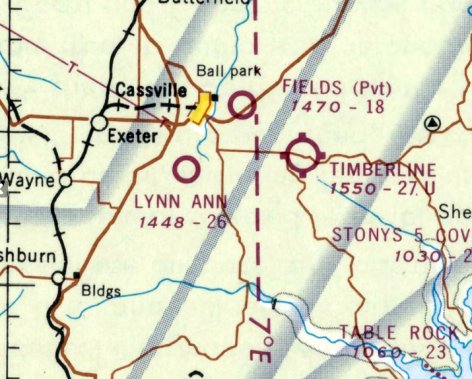 The last aeronautical chart depiction which has been located of Timberline was on the October 1968 Tulsa Sectional Chart (courtesy of Lee Corbin).