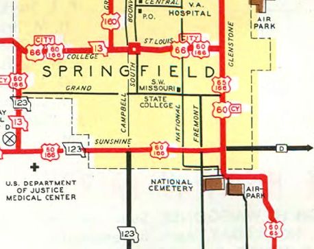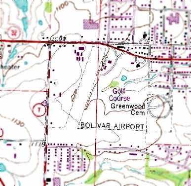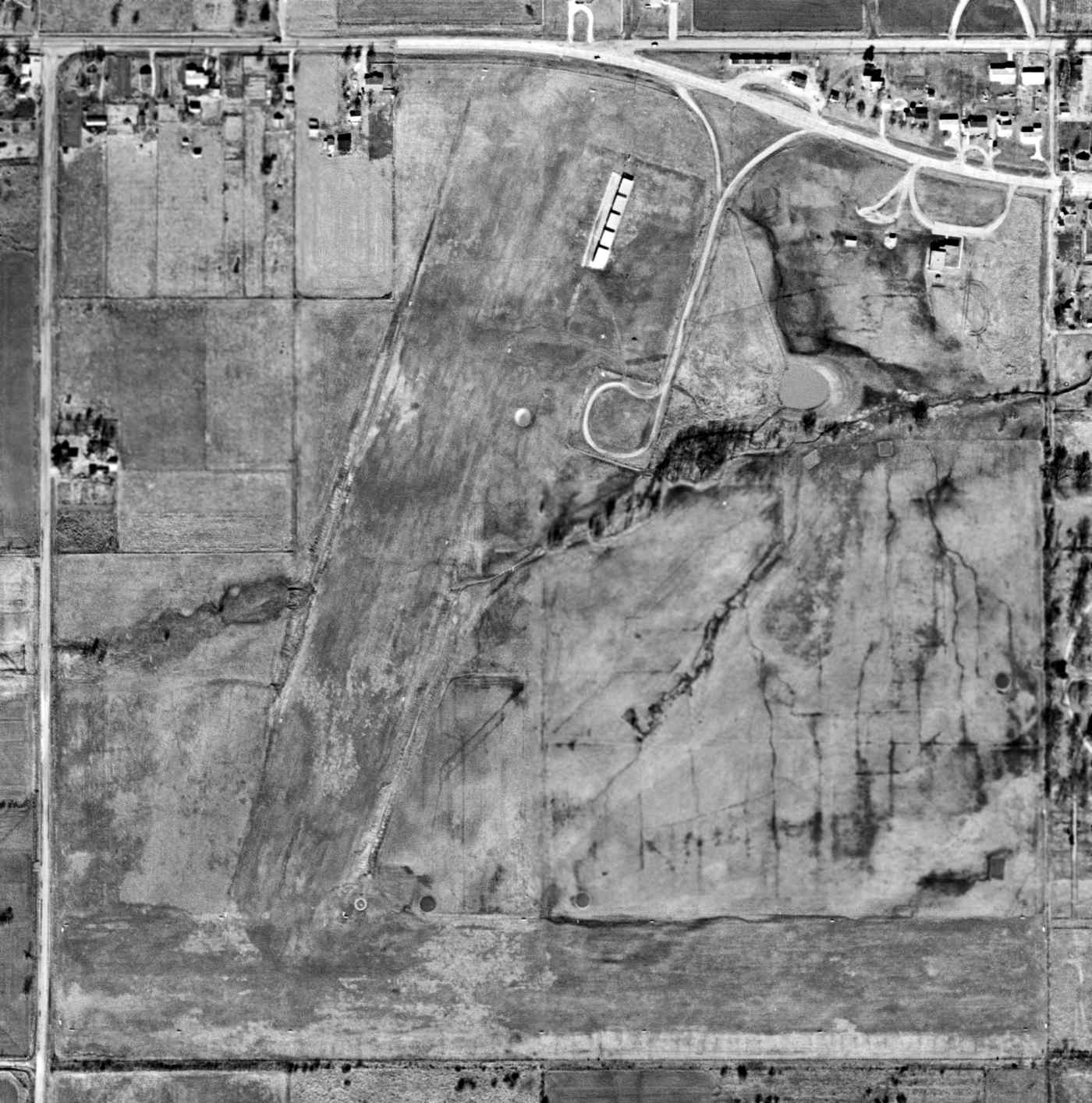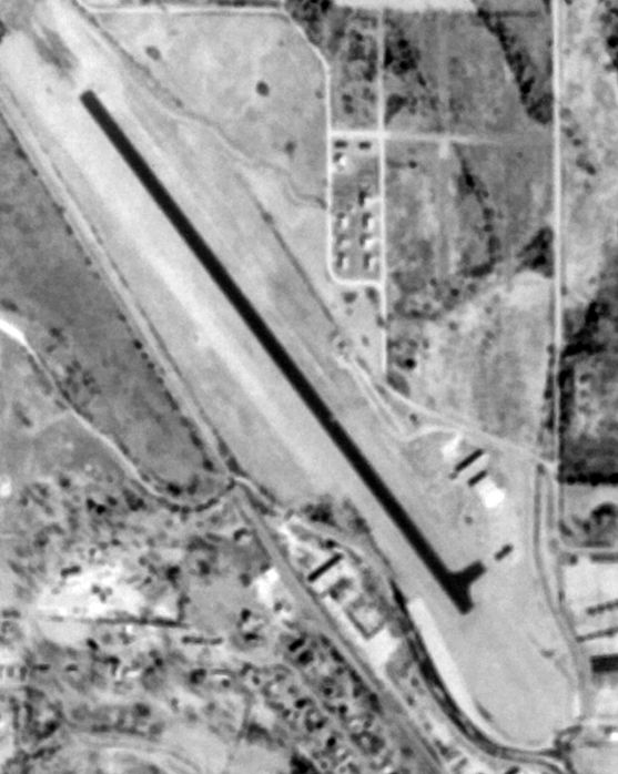 A 1995 USGS aerial view looking northeast showed the former runway of the original West Plains Municipal Airport has been reused as a street,