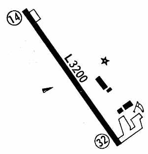 with a taxiway on the northwest side leading to a terminal building & 2 other buildings (hangars?).