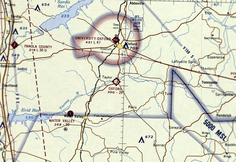 The last aeronautical chart depiction which has been located of Oxford Municipal Airport was on the August 1968 Chattanooga Sectional Chart.