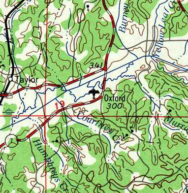 Oxford Airport, as depicted on the February 1937 Chattanooga Sectional Chart.