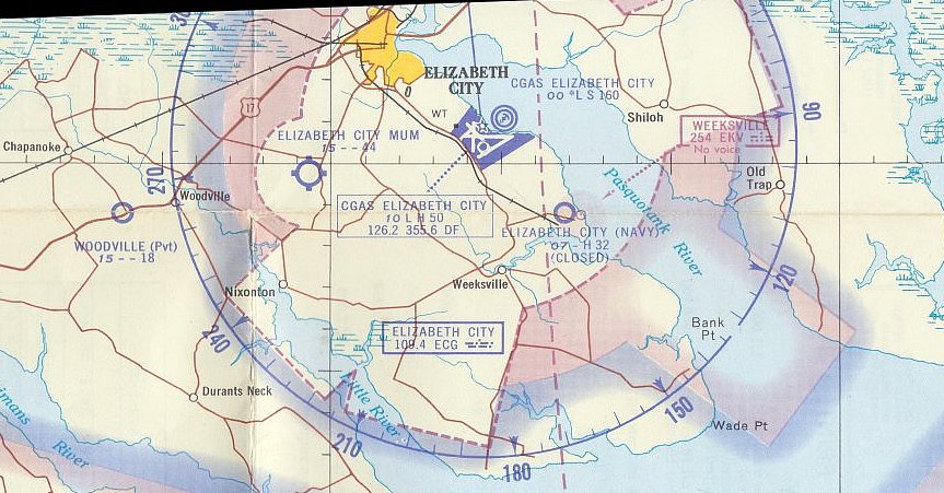 Elizabeth City was described on the May 1960 Chesapeake Bay World Aeronautical Chart (courtesy of Scott Kimball)