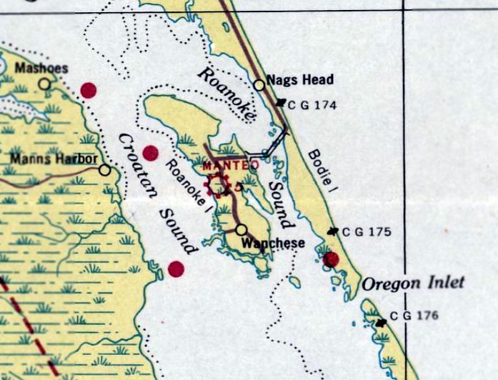 Note that it also depicted the replacement Manteo Airport as a military airfield on the northwest end of the island.