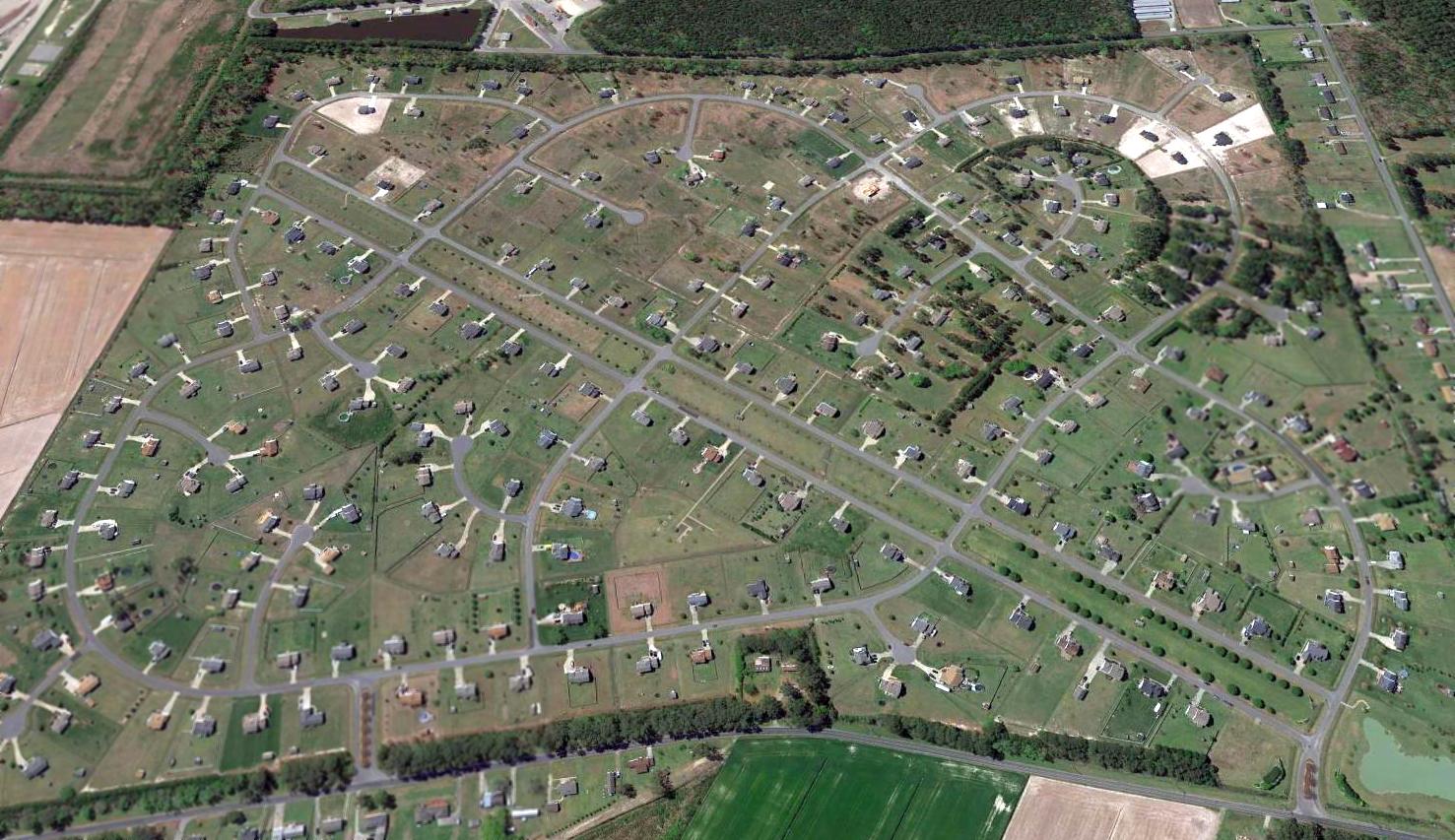 A 2005 aerial photo showed a housing development had covered the 2nd location of Elizabeth City Municipal Airport,