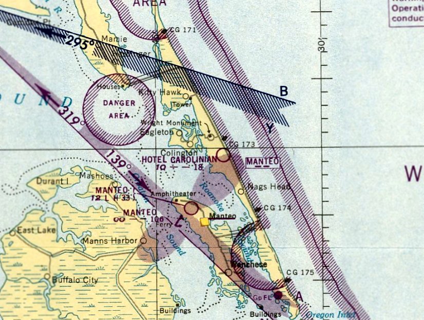 The last aeronautical chart depiction which has been located of the original Manteo Airport was on the March 1943 Norfolk Sectional Chart.