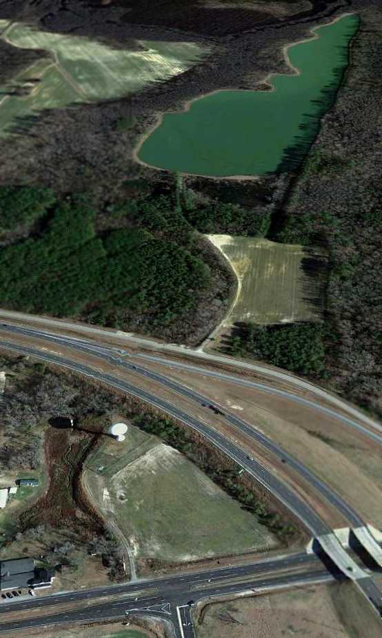 The site of the 2nd location of Elizabeth City Municipal Airport is located southwest of the intersection of Body Road & Simpson Ditch Road.