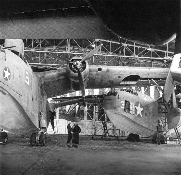 Three Martin PBM Marlin seaplanes inside a Harvey Point hangar during WW2 (National Archives photo).