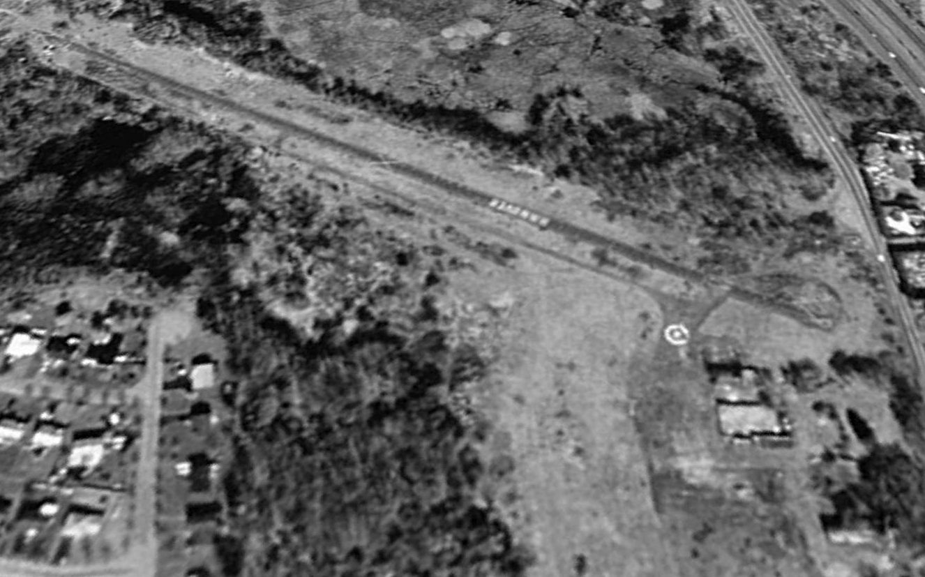 A 1954 aerial photo showed the site of Arcola Airport had been covered by houses & streets.