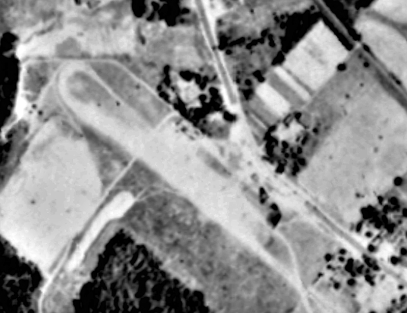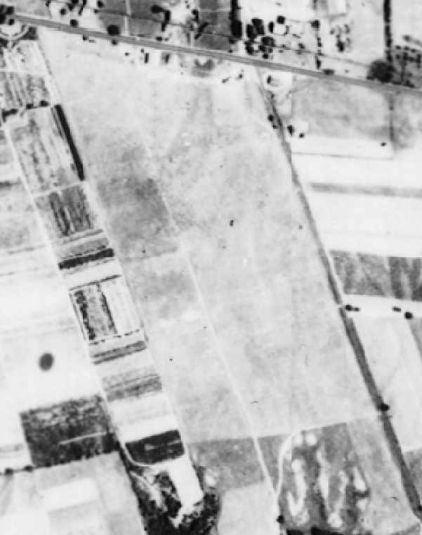 A 2/27/54 aerial view showed the Standard Aircraft factory buildings remained, with the clearing to the northwest (presumably the airfield) also remaining largely clear.