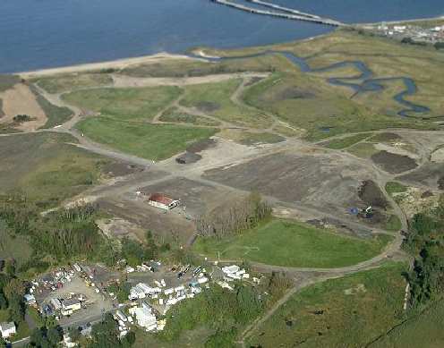 The landing strip is still there as is the hangar which is in very bad shape. It is unclear if either will remain once it is converted to parkland.”