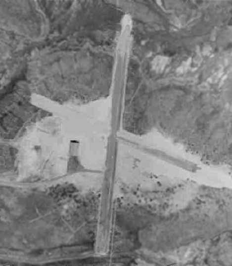 with a few small buildings on the northeast side, but there were no aircraft visible on the field.