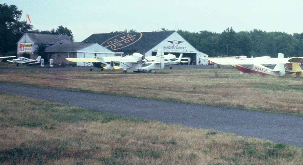 A 1970 aerial view depicted the main hangar at Hanover, and over 60 light aircraft visible parked on the field.