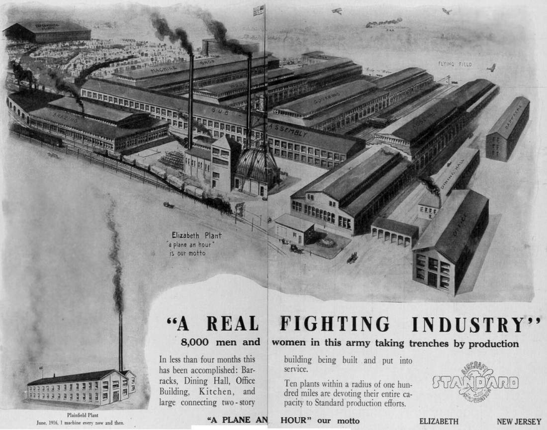 A 1919 photo of the Standard Aircraft Bayway factory buildings.